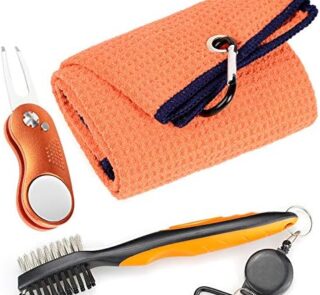 Golf Microfiber Towels Gifts Kit,Golf Cleaning Accessories Set-2 Waffle Golf Towels,Golf Brush,Golf Divot Tool,Suitable for Golf Lovers,Gift for Men Women and Children