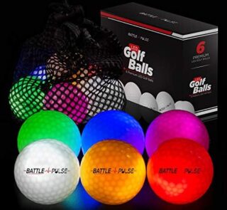 LED Light up Golf Balls, Glow in The Dark Night Golf Balls – Multi Colors of Blue, Orange, Red, White, Green, Pink – Pack of 6