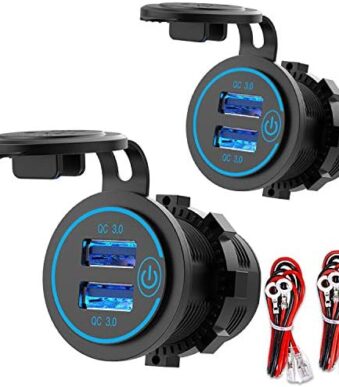 [2 Pack] 12V USB Outlet, Quick Charge 3.0 Dual USB Power Outlet with Touch Switch, Waterproof 12V/24V Fast Charge USB Charger Socket DIY Kit for Car Boat Marine Bus Truck Golf Cart RV Motorcycle, etc.