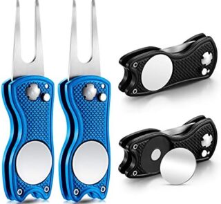 VISUALIZE Talon/Raptor Premium All-Metal Switchblade-Style Divot Repair Tools - Golf Accessories - Divot Tools with Owl Ball Marker (w + w/o Hat Clips) (Multiple Options)