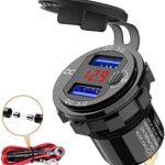 [2021 New] Quick Charge 3.0 Dual 12V USB Car Charger, Aluminum Socket with Red Digital Voltmeter, Waterproof Car Outlet with Power Switch Button, for Marine Boat Motorcycle Truck Golf Cart RV etc.
