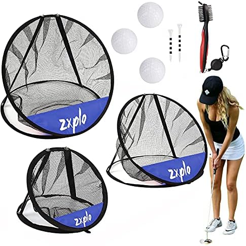 ZXPLO Portable Golf Chipping Net Target Hitting Training Equipment with Golf Ball Tees & Club Cleaner for Backyard