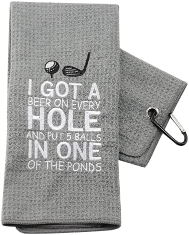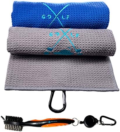 Ralch Wysom 2Packs Golf Towels for Golf Bags with Carabiner Clip Brush for Men Women, Waffle Microfiber Fabric Grey/Blue Sport Travel Accessories for Ball Clean Wiping Sweat,Size16 x24