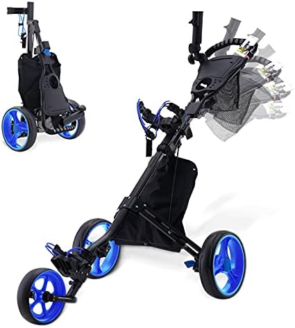 Golf Push Carts, 1 Step Folding 9lbs Lightweight, High-Tech Minimalistic Design (Blue)