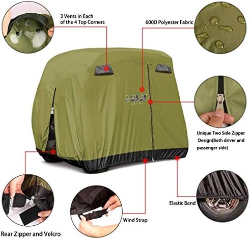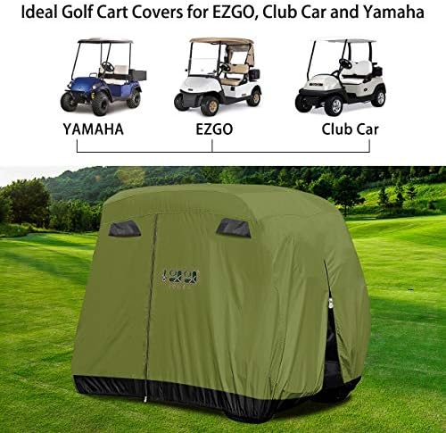 10L0L 4 Passenger Golf Cart Cover Fits EZGO, Club Car and Yamaha, 400D Waterproof with Extra PVC Coating Sunproof Dustproof – Two Side Zippers (Both Driver and Passenger Side) – Black Army Green