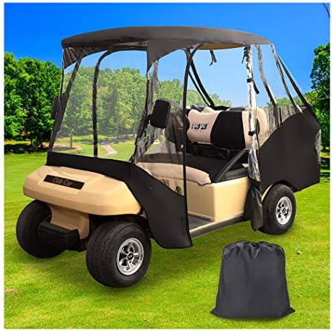 10L0L 4 Passenger Golf Cart Enclosures for Club Car DS with Security Side Mirror Openings, Waterproof Portable Transparent Golf Cart Cover Storage Driving Enclosure – Passengers Can Sit in Back