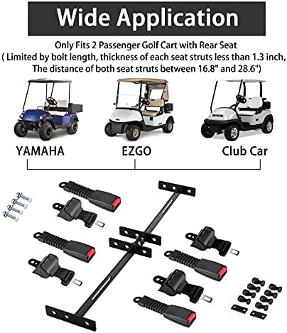 10L0L 4PCS Universal Retractable Golf Cart Seat Belt Kit with Bracket for EZGO, Club Car Golf Carts. Warm reminder: it doesn’t fit for Yamaha golf carts.