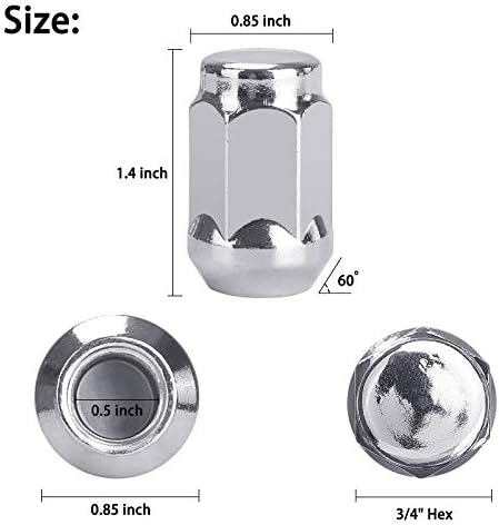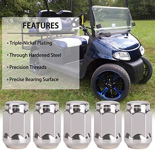 10L0L Chrome Wheel Lug Nut Kit for EZGO & Club Car Golf Cart, 1/2-20 Size 16 Pack