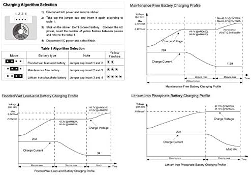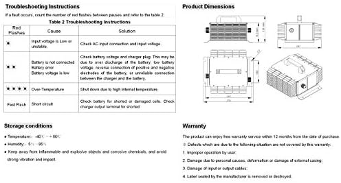 Multi safety protections: short circuit protection, over-voltage protection, input undervoltage protection, over-temperature protection and battery reverse connection protection all make this battery charger safe & reliable to operate