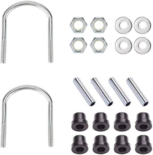 Kit includes: 2 * heavy duty rear leaf springs(replaces OEM# 102006501, 1014675, 1011149, 1012618), 8 * rubber bushings(OEM# 1015583), 4* metal spacers(OEM# 1012303), 2* U bolts(OEM# 1014902) with lock nut(OEM#1014555)