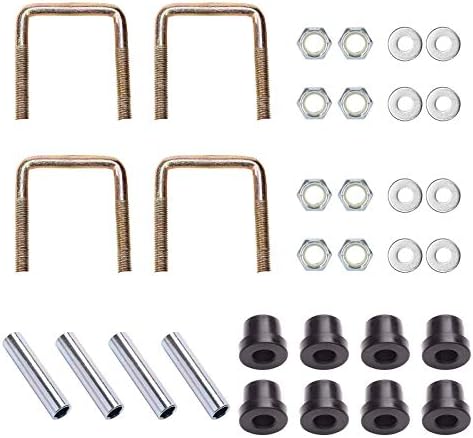 Kit includes: 2 * heavy duty 4-leaf rear springs, 8 * rubber bushings, 4 * stainless sleeves, 4 * U bolts