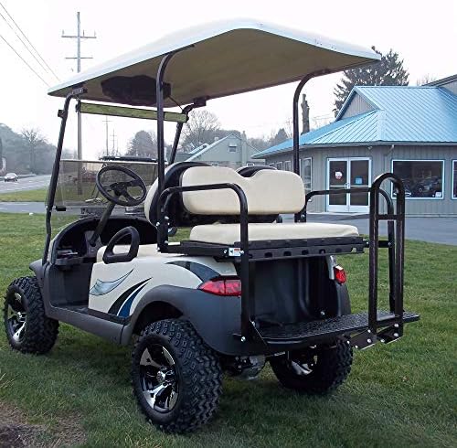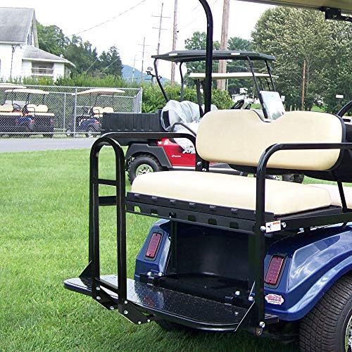 10L0L Golf Cart Rear Seat Safety Grab Bar that mounts fully underneath footstep for more secure design, seat can fold down and has enough room without hitting the bar.