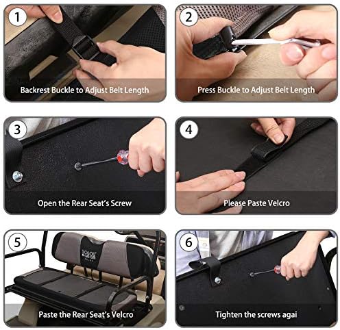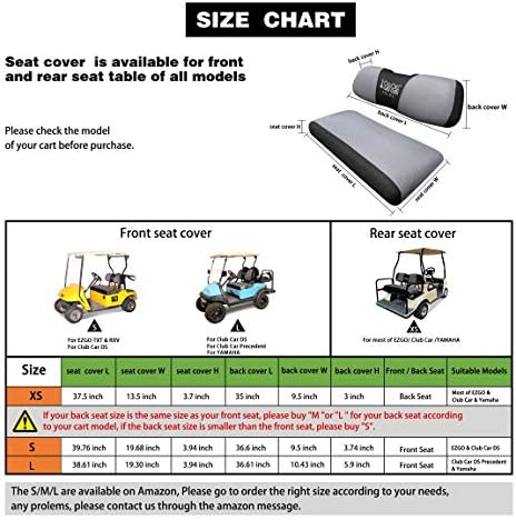 ONLY FIT FOR THE REAR SEAT OF EZGO, CLUB CAR AND YAMAHA: 10L0L golf cart rear seat cover only fit for your Rear Seat of EZGO, Club Car and Yamaha. NOT FIT THE FRONT SEAT and Madjax. Seat Cover Size(37.5″*13.5″*3.7″) and Backrest Cover Size (35″*9.5″*3″), if your back seat is the same size as your front seat, please buy our Large one, do not buy this X-Small one. Note: If you buy the rear cover with our front seat cover(not contained )which will make your cart more beautiful.