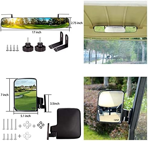 Universal golf cart mirror kit: 1* rear view mirror(16.5*2.75 inch) & 1 pair side mirrors(5.5*7 inch)