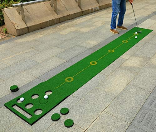 PERFECT YOUR PUTTING TECHNIQUE: High quality golf putting green surface designed to stay smooth.The premium back will eliminate folds and creases in the putting green surface. 6 different holes and 5 printed holes design to improve your putting from various angles and distances