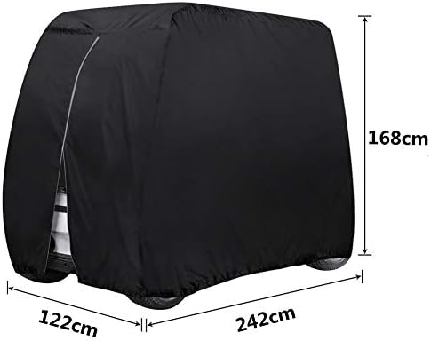 【WATERPROOF MATERIAL】- This golf cart cover is made of high-quality durable woven polyester fabric with internal silver coating UV protection, which is more waterproof, durable and heavy duty than others. It can give the golf carts all-round protection against sun, rain, hail, wind, dust, dirt,etc.