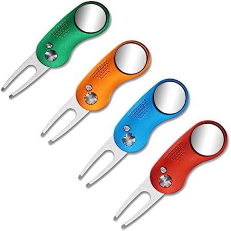 ?? Golf Divot Repair Tool, 4 Pcs Stainless Steel Foldable Magnetic Pop-up Button Switchblade and Detachable Golf Ball Marker (4 Colors)