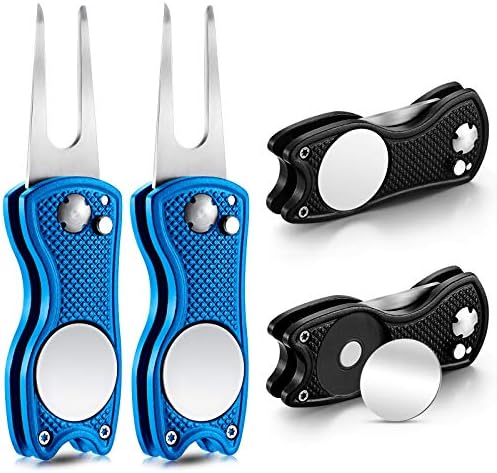 4 Pieces Golf Repair Tool Stainless Steel Foldable Golf Divot Tool Magnetic Golf Pop up Button Tool Golf Ball Marker