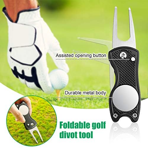 Foldable divot: the golf divot tool will avoid scratches in the pocket, designed with pop down button for easy unfolding, and it can be easily opened and convenient for you to put your ball in it, easy push down to pop and reseat