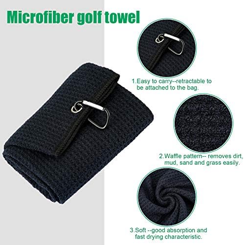 Microfiber golf towel: our microfiber golf towel with waffle pattern design removes dirt, mud, sand and grass better than cotton towels, with good absorption and fast drying characteristic, it is ideal for keeping golf club clean and sweat off your face