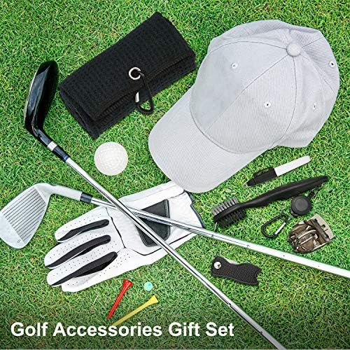 5 Pieces Golf Cleaning Tool Kit Includes Microfiber Waffle Pattern Golf Towel, Golf Brush, Golf Ball Liner, Golf Ball Marker Pen and Golf Divot Tool for Golf Accessories (Black)