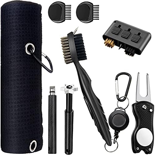 Golf club cleaning kit: the package includes 1 microfiber golf towel, 1 foldable divot repair tool, 4 pieces of different styles of golf brushes and 2 different sharpeners; These practical golf accessories are set for most golf lovers