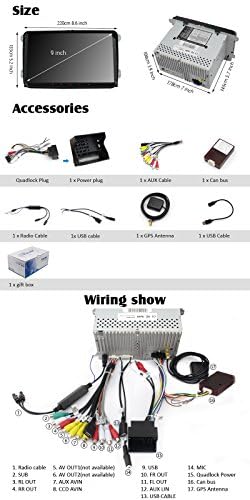 Accessories: 1x Car Stereo, 1x Quadlock Plug(Power plug), 1x AUX Cable, 1x Can bus box, 1x Radio Cable, 2x USB Cable,1x GPS Antenna,8x Screws