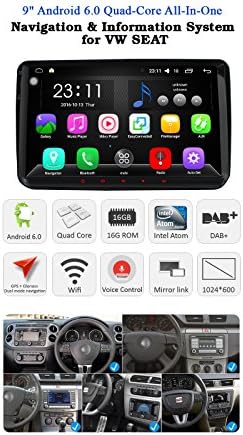 A-SURE 9 inch Android 6.0 HD Full Touchscreen Car GPS Stereo FM Radio for VW Golf Polo Bora Passat Jetta EOS Sharan Tiguan Touran T5 WiFi Mirror Link Bluetooth SWC KF9W7 Two-Year-Warranty