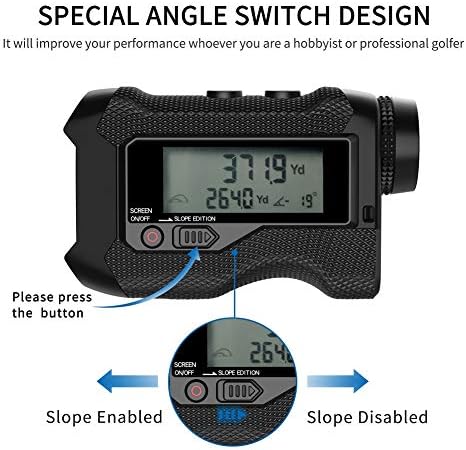 Accurate for Measuring Angles: Whether you are a hobbyist or professional golfer, our rangefinder’s special angle switch design will improve your performance. The laser rangefinder for golfing has a range of 750 yards, an accuracy of 0.5 yards and provides up to 20° of slope distance compensation.