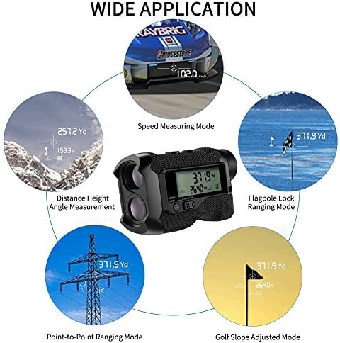 Clear Double Display Screen: Get clear and easy measurements when playing golf. The golf rangefinder with slope is equipped with 6x magnification with adjustable focal. The golf laser rangefinder has an internal transflective LCD screen and 2 inches of external LCD display screen. This rangefinder golf is suitable for use while wearing glasses.