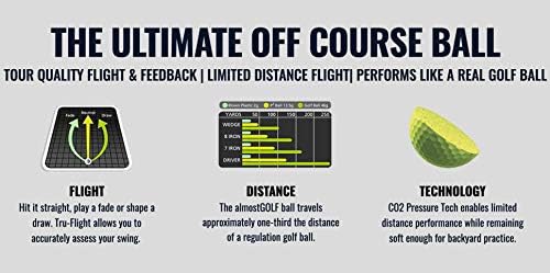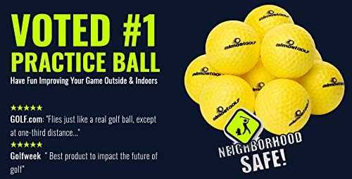 The patented solid core practice golf balls with internal pressure design allows for the Almost golf ball to perform like a real golf ball. Which means you can practice anytime, anywhere. These practice golf balls are one of the best golf training aids because they allow you to shape your shot the same as on the course. The limited flight of the foam practice balls make them safe to use in any residential area, turning your backyard or a vacate lot into a personal golf course. You can hit it straight, play a fade or shape a draw with realistic feel and trajectory. Experience the difference and see why the Almost golf practice golf balls are used by some of today’s top teaching professionals. These Almost golf balls come with both White and Yellow colors that are perfect foam golf balls for any season.