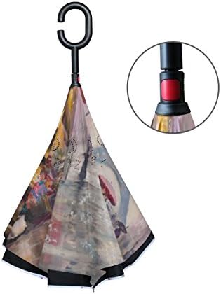 Hands Free — Unique C shaped handle free your hands to hold a baby or use a mobile phone if needed.Especially convenient for you to hold this reverse windproof umbrella with your wrist when you are lifting a shopping bag