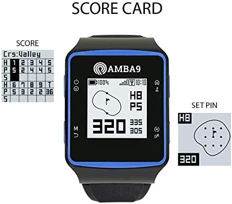 Amba9 GPS Golf Watch Bundle with 1 Volvik V-Logo Golf Hat (Adjustable), 5 Ball Markers and 1 Hat Clip – Rangefinder with Preloaded Courses, Step Tracking, Distance to Hole Measurements