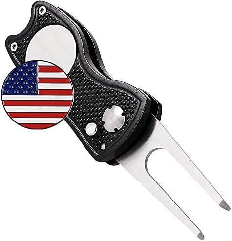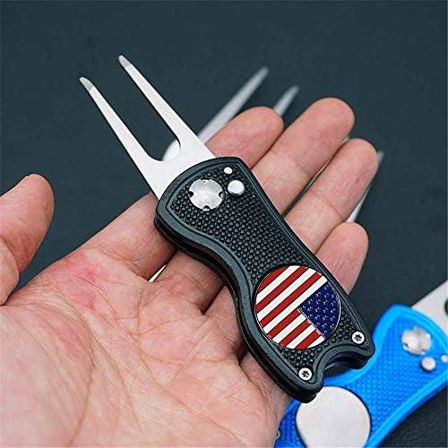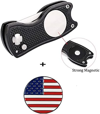 Well Packaged: You Will Receive the Product Packaged Well in Good Condition; Package Included 1 Black Divot Switchblade Tools with 2 Golf Ball Markers(USA Flag+USA Eagle); The Golf Ball Marker Size Under 0.935 inch Can Attach to This Foldable Divot Tool;