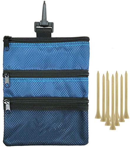 Amy Sport Golf Pouch Bag Multi Pocket Clip Zipper Hook to Bag, with 10 Pcs Wooden Golf Tees Value Set, Durable Nylon Valuables Holder for Men Women