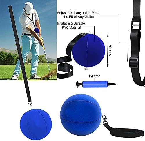 Golf Impact Practice Ball:This Golf Training Ball Aid is a Good Training Tool for Most Golf Enthusiasts and Learners to Improve the Swing Skills, You Can Use the Smart Training Ball to Practice the Swing Posture, Strengthen the Arm Muscle Memory, Help to Get the Hitting Point in a Short Time, This Inflatable Smart Ball is Attached to an Adjustable Lanyard to Meet the Needs of Anyone,It can be Used Under the Armpits or Inflated Between the Forearms;