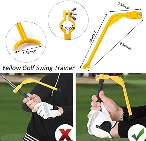 Golf Swing Trainer: The Yellow Swing Trainer is Made of Durable PVC Plastic, Not Too Heavy and Easy to Carry. By Setting the Correct Hinge Position at the Top of Your Backs Swing it Allows You to Get an Artificial Feel of the Perfect Swing. It will Correcting the Form in Your Back Swing it will Take Less Power to Send the Ball Further. Work up your Power Slowly and you Could Increase Your Distance Significantly;