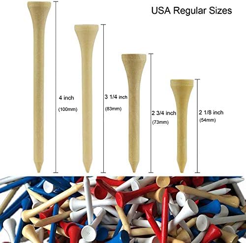 Amy Sport Golf Tees Bulk 2 1/8 2 3/4 3 1/4 inch Wood Pack of 100, Color Red Blue White Wood Mixed, Professional 70 80mm Wooden Tee for Men Women Kids