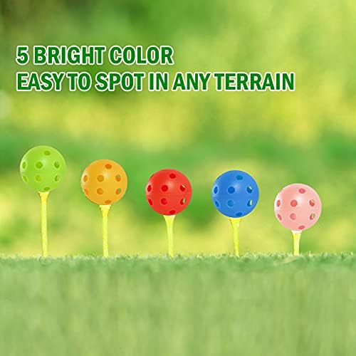 AQUEENLY 50pack Plastic Golf Balls for Practice, Colored Practice Golf Balls for Backyard Indoor Outdoor – Airflow Hollow Golf Practice Ball for Swing Practice, Indoor Simulators, Home Use (5 Colors)