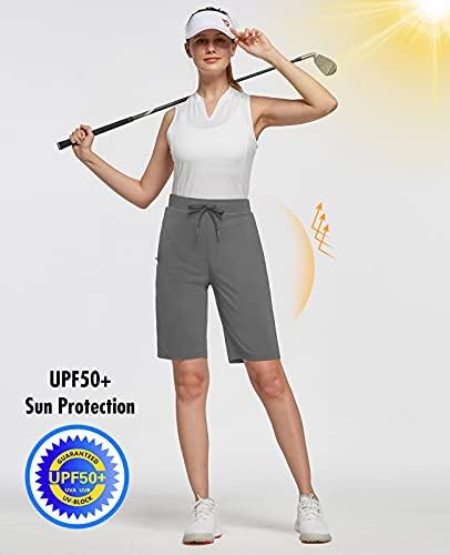 BALEAF Women’s 10″ Golf Bermuda Shorts with Zipper Pockets Long Hiking Shorts UPF 50+ Quick Dry