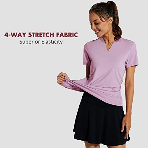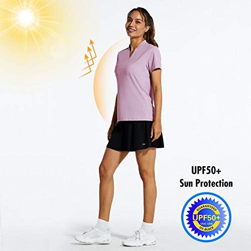 BALEAF Women’s Golf Tennis Shirts V-Neck Lightweight Quick Dry UPF 50+ Sun Protection Short Sleeve Polo Shirts Collarless
