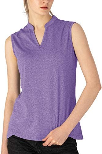 BASUDAM Women’s Golf Polo Shirts V-Neck Sleeveless Collarless Tennis Athletic Shirts Quick Dry