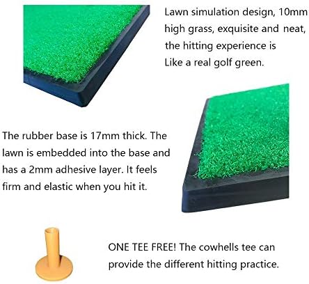 Heavy, non-slip rubber base golf mat:rubber weight 6.5 lbs,has good flexibility,exhibited excellent grip indoors, grass or concrete,have good adaptability.