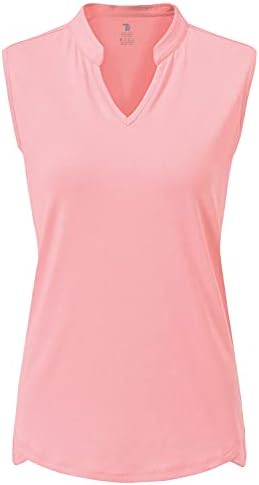 BGOWATU Women’s Golf Polo T-Shirts Sleeveless V Neck Collarless Tennis Shirts UV Protection Quick Dry Lightweight