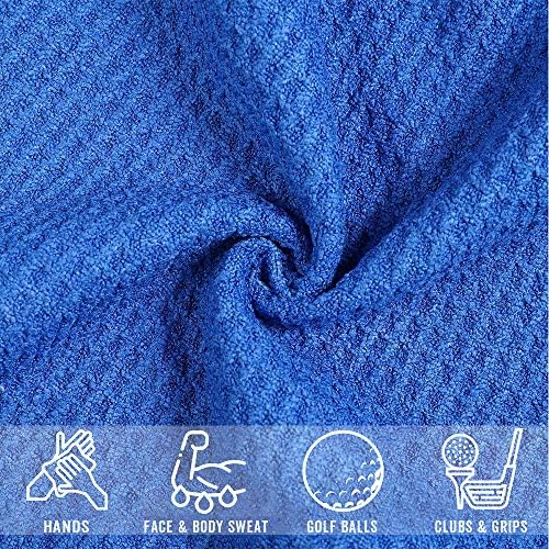Blue Microfiber Golf Towel, Tri-Fold Waffle 24″ x 16″ Large Quick Dry Golf Cleaning Caddy Towel with Carabiner Clip, Groove Cleaner Brush, & Foldable Golf Divot Tool Golf Club Cleaning Set for Golfer