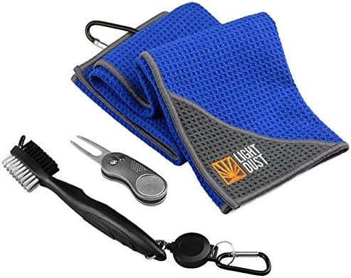 【100% SATISFACTION】 We are here to help! Your 100% satisfaction is our mission. Please feel free to contact us if you are not satisfied with LIGHT DUST Golf Club Cleaning Kit including a Blue Microfiber Golf Clean Towel with Gray Edge, a Black Golf Club Brush, and a Gray Divot Tool. C C fashion will provide a free replacement or a full refund.