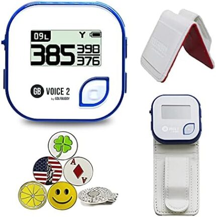 Hard-shell carrying case that can be clipped easily to your golf bag, a microfiber cloth for easy cleaning and a CR2-3V battery.