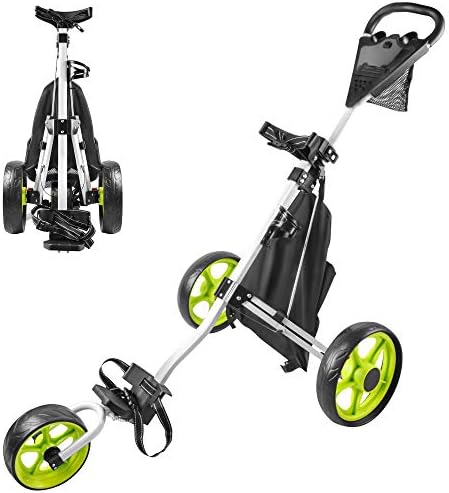 BOBOPRO Golf Push Cart 3 Wheel Foldable Lightweight Golf Pull Trolley One Sec to Fold/Unfold with Foot Brake Golf Accessories for Practice and Game Gift for Men Women/Kids