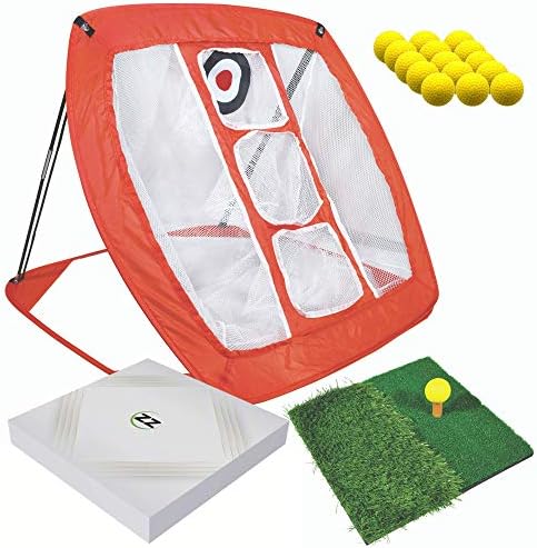 Bunzzr Pop Up Golf Chipping Net with Dual-Lie Turf – Indoor/Outdoor Golf Net – Golf Game with Rubber Mat and Golf Practice Net – Golf Training Accessory with 12 Foam Golf Balls and Golf Tee…