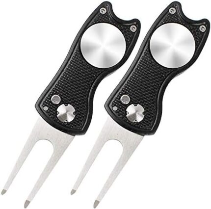 Champmate Golf Divot Tool, Pop-up Button Stainless Steel Switchblade and Foldable Magnetic with Golf Ball Marker